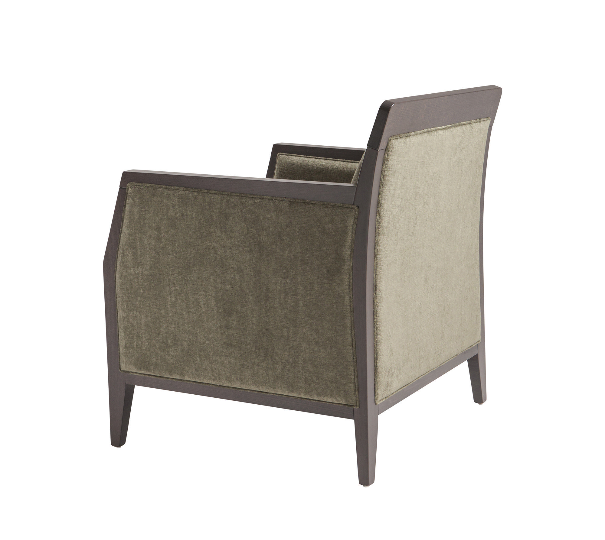 Lounge chair with wood frame in solid natural or stained beechwood. Upholstered seat and back.